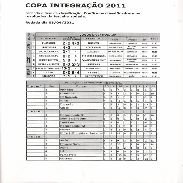 A próxima partida do Vinhedos será no domingo, dia 10, às 15h15, contra o Ipê, de São José da Lapa, no Estádio Municipal de Neves.