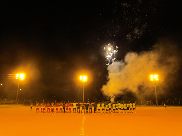 A abertura da 6ª edição do torneio foi feita com toda a pompa da circunstância. As equipes entraram perfiladas junto com o trio de arbitragem, assistiram à queima de fogos e cantaram o hino nacional. A torcida lotou as arquibancadas e vibrou com o calor do jogo.