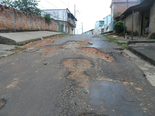 Em locais em que o asfalto é antigo os buracos chegam a ocupar quase toda a rua. É o caso da Rua José Maria Rodrigues, que apesar de ser larga, devido aos buracos fica impossível passar dois veículos ao mesmo tempo. Situação parecida ocorre com as ruas São Bento e Joaquina Ângela Pereira no bairro Santa Fé e nas ruas Dois e Rosângela no bairro São José.