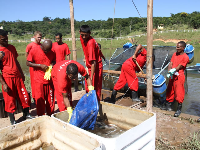 Atualmente, oito presos estão envolvidos na criação de peixes no Presídio Antônio Dutra Ladeira. Pelo trabalho, eles recebem redução de pena: a cada três dias trabalhados, um dia a menos na sentença a ser cumprida.