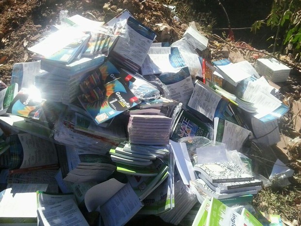 Aproximadamente 2.000 livros novos foram encontrados abandonados em um lote vago no bairro Santinho, em Ribeirão das Neves, na manhã deste sábado (14). De acordo com a Polícia Militar (PM), o material é novo e foi localizado após a corporação receber uma denúncia anônima. Os livros são didáticos e destinados a escolas estaduais de cidades como Contagem, Nova Lima e Brumadinho.