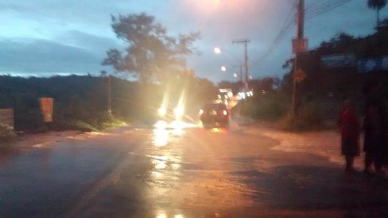 A chuva dos últimos dias gerou acumulo de água no antigo açude da região central de Ribeirão das Neves, na divisa entre os bairros São Pedro e Neviana, próximo à Apae. Na manhã desta quarta (20), a água invadiu a rodovia e abriu um buraco na margem oposta ao açude.