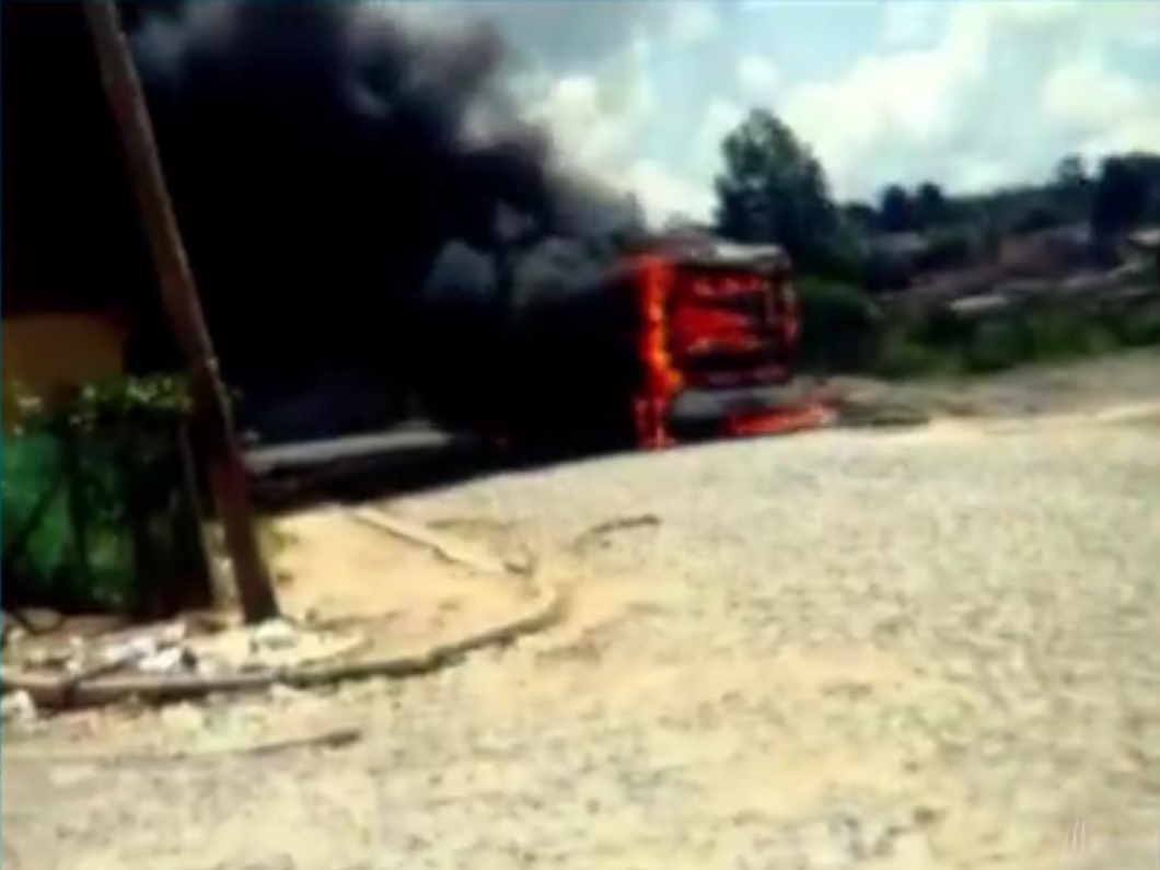Um cinegrafista amador registrou o ônibus em chamas, que foi completamente destruído pelo fogo. Houve confusão durante a desocupação do terreno. Policiais militares e guardas municipais tentaram tirar uma mulher que se negou a deixar o terreno à força.