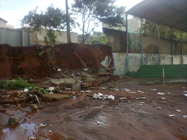 A queda de um muro de arrimo assustou os moradores de uma casa na tarde deste sábado. O incidente ocorreu na Rua Jatobá, no Bairro Vale das Acácias.