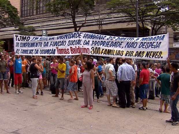 Moradores da ocupação Tomás Balduíno, em Ribeirão das Neves, protestaram, nessa terça-feira (27) em frente ao Tribunal de Justiça de Minas Gerais (TJMG), em Belo Horizonte.