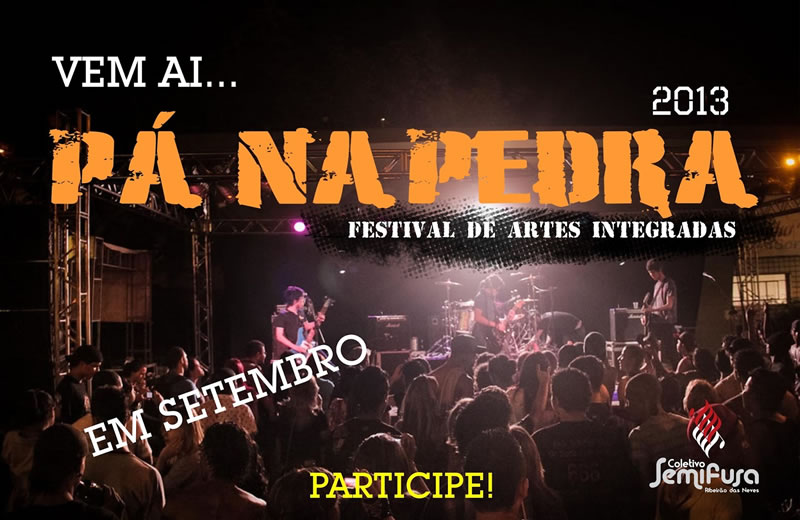 A quarta edição do Pá na Pedra já tem data marcada. De 21 a 29 de setembro, Ribeirão das Neves terá programação cultural intensa com shows, apresentações de teatro e dança, atividades de formação, entre outras. Promovido pelo Coletivo Semifusa, o festival integra o Circuito Mineiro de Festivais Independentes, e está inserido no calendário cultural do estado.