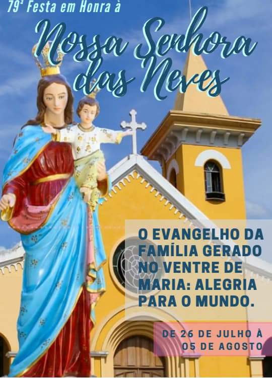 A Paróquia de Nossa Senhora das Neves divulgou a programação religiosa da 79ª Festa da Padroeira. Neste ano, a programação vai do dia 26 de julho até 5 de agosto com o tema "O evangelho da família gerado no ventre de Maria: alegria para o mundo".