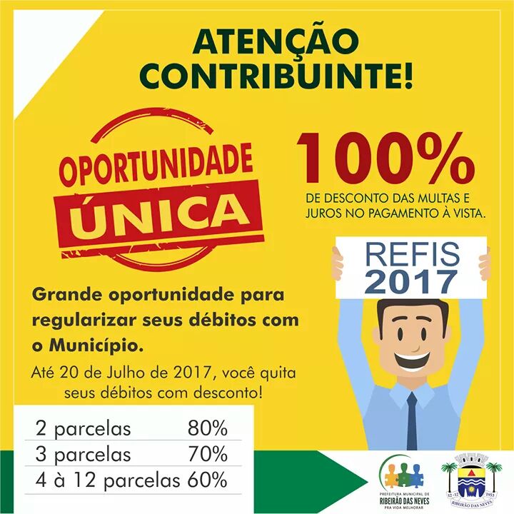 A Prefeitura de Ribeirão das Neves divulgou, na tarde desta sexta-feira (24), um programa de refinanciamento para os contribuintes que têm dívida ativa com o município. A "oferta" é válida até 20 de julho deste ano.