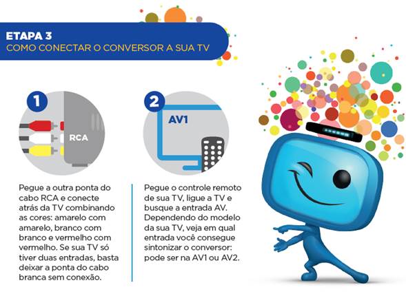 A Seja Digital é a entidade responsável por distribuir conversores de TV Digital e antenas de recepção às famílias beneficiárias dos programas sociais do Governo Federal. Os interessados devem agendar a retirada do kit gratuito no site www.sejadigital.com.br/home.