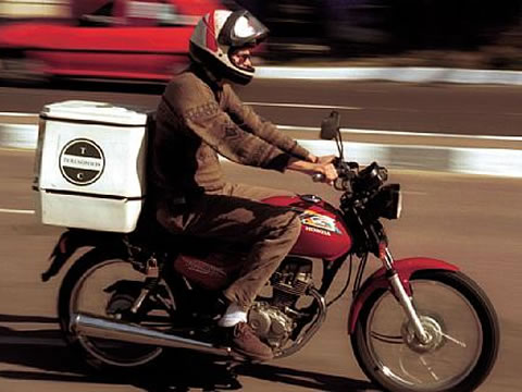 Já para a motocicleta, é necessário registro da moto como de aluguel (placa vermelha), inspeção semestral, antena aparadora de linha de cerol, e sidecar (compartimento de carga com roda adapatada ao lado da moto) para transporte de botijões de gás com capacidade de máxima de 13 kg e de galões de água mineral com capacidade máxima de 20 litros. O transporte de passageiros (mototaxi) continua sendo proíbido, assim como transportar combustíveis inflamáveis ou produtos tóxicos.