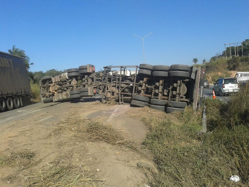 Uma carreta carregada de cimento tombou na BR-040, em Ribeirão das Neves, no sentido Sete Lagoas. De acordo com informações da Polícia Rodoviária Federal (PRF), o acidente ocorreu por volta de 14h15, no km 514, cerca de 4 km antes do trevo da cidade.