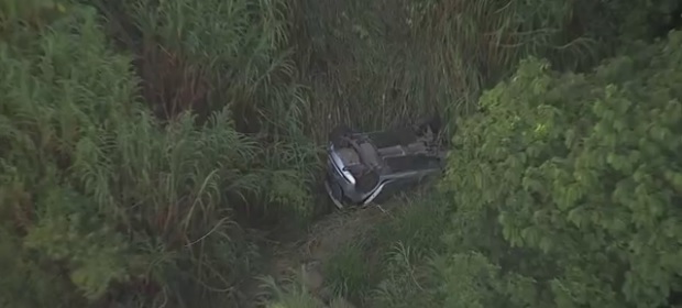 De acordo com o Corpo de Bombeiros, antes da queda, o veículo ainda capotou. A suspeita é que o motorista tenha perdido o controle da direção.