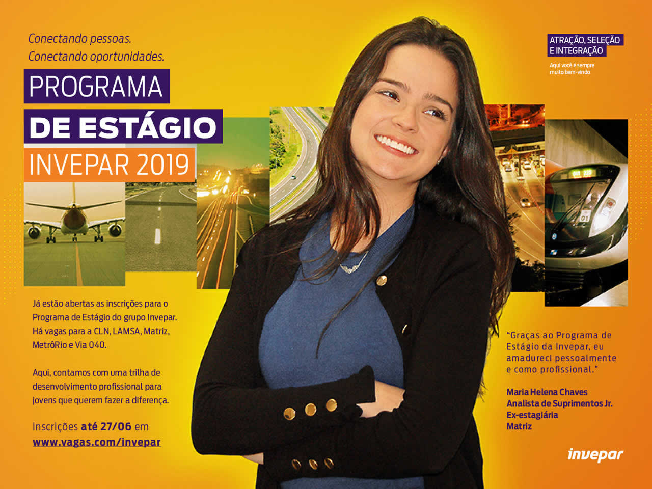 As oportunidades são para os níveis técnico e superior na própria Invepar, MetrôRio e Linha Amarela (Lamsa), no Rio de Janeiro, a Concessionária Litoral Norte (CLN), na Bahia, além da Via 040, em Minas Gerais.