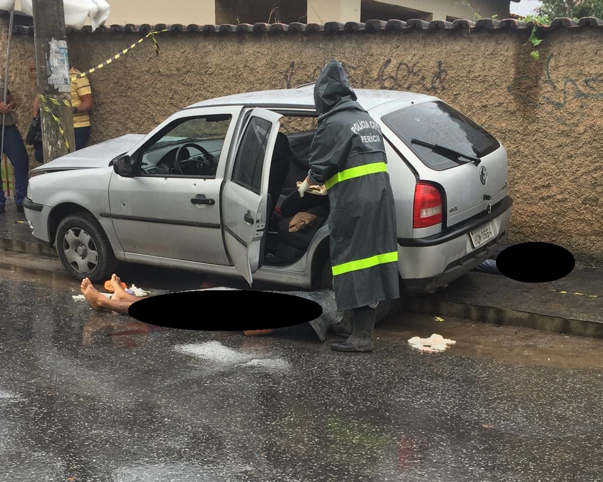 A perícia esteve no local e constatou que o suspeito teria efetuado os disparos da parte de trás do carro. O motorista foi atingido várias vezes nas costas e o passageiro, que estava ao seu lado na parte da frente do carro, foi acertado por vários tiros na cabeça.
